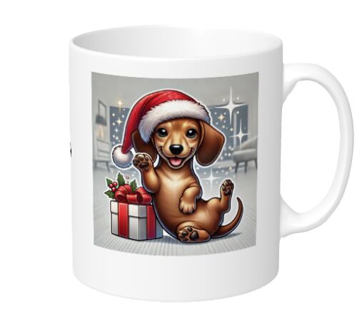 ミニチュアダックス マグカップ ギフト用の犬 プレゼント。好奇心と冒険心を届ける可愛い デザイン。犬好き クリスマス プレゼントに最適なおしゃれ カップ。年末年始のギフトに喜ばれる犬柄雑貨です。